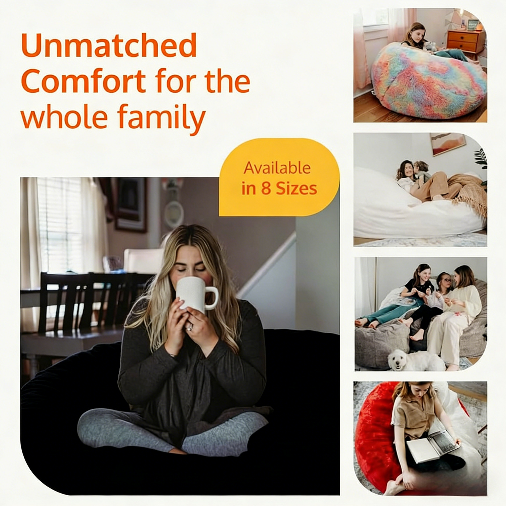 This oversized 3-foot bean bag chair offers full-body comfort, perfect for reading, gaming, or relaxing in living rooms, bedrooms, home theaters, or dorms.