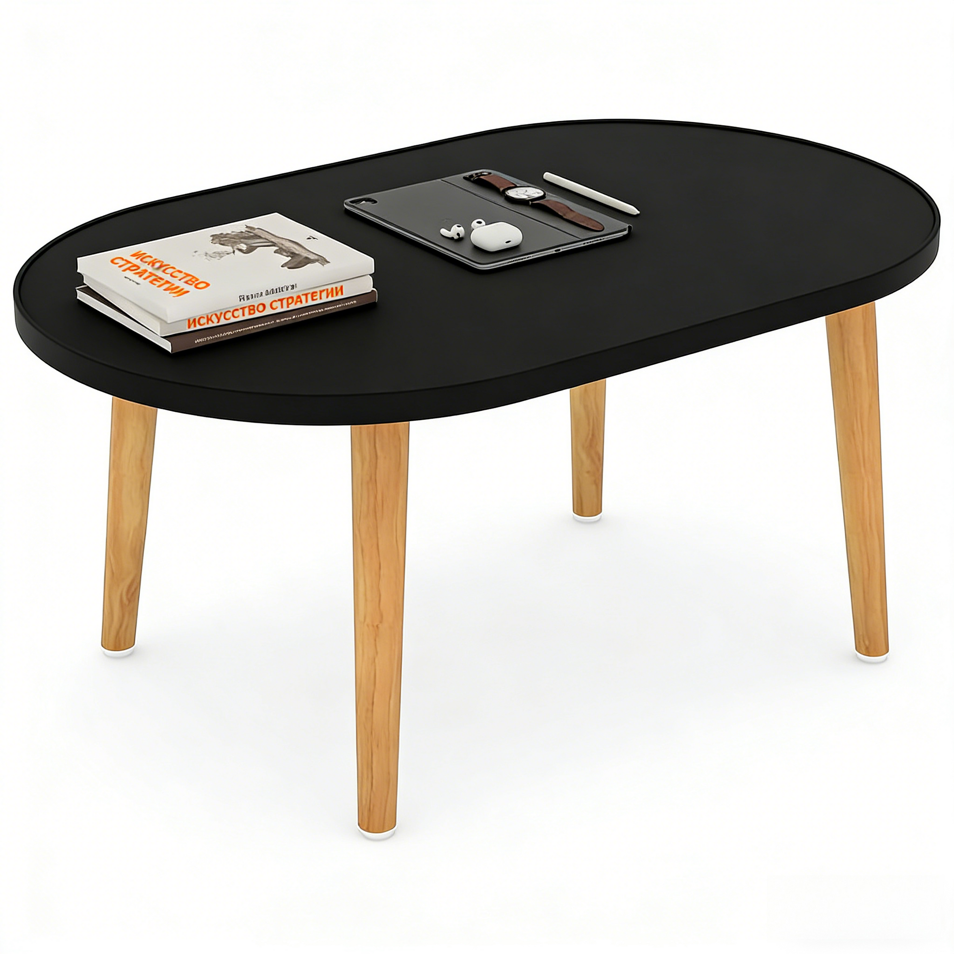 【Modern Minimalist Design】 – Features a white oval tabletop paired with four solid wood legs, showcasing smooth, clean lines that blend seamlessly into contemporary home decor.