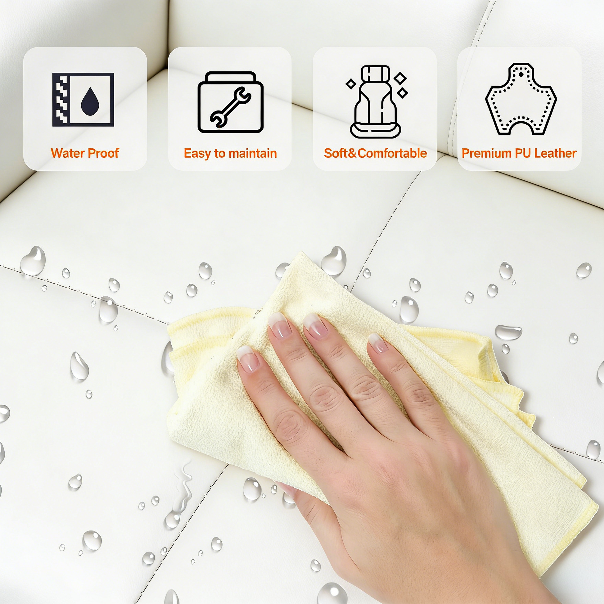 This love seat is made of eco-friendly PU leather. The smooth, wear-resistant, waterproof leather is easy to clean and built to last through everyday use. Its PU leather surface and orange color add a delicate shine, creating a modern and fashionable look that brings energy to any room.